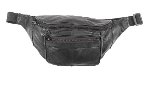 This Medium Fanny Pack is just the right size to hold everything you will need to keep handy. There are three outer zippered compartments. One large and one small on front and one large secure zippered pocket on back. The two large ones are lined. The soft lambskin leather is very comfortable to wear and the adjustable nylon belt will fit up to a 38 inch waist. This bag is perfect for travel, hiking, shopping or just taking a walk. The bag measures 10 X 6 X 3 inches.Customer Reviews