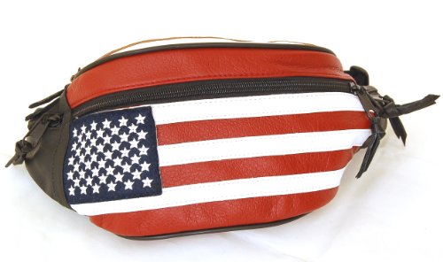 Genuine Leather USA Flag Fanny Pack, Stars & Stripes Waist Bag or Belt Bag. Great for Travel or Everyday Use Best